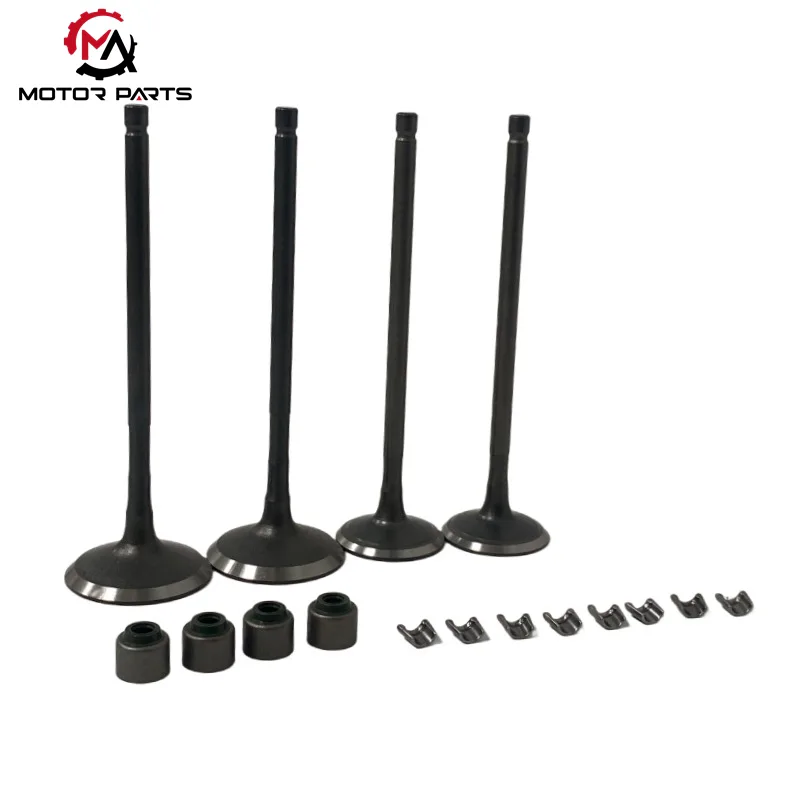 Sesalni ventili: izdelani iz nerjavečega jekla visoke trdnosti, ki združuje odlično odpornost proti koroziji in odpornost na visoke temperature. Lahko prenesejo visokotemperaturno okolje 800-1000 ℃ v notranjosti motorja in imajo dobro žilavost, preprečujejo deformacije ali zlome, ki jih povzroči dolgotrajno visokofrekvenčno gibanje, ter dolgo časa zagotavljajo gladek in neoviran sesalni kanal.