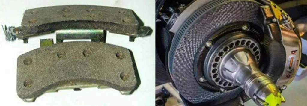 Azbestne zavorne ploščice in visoko zmogljiv zavorni sistem iz karbonskih vlaken