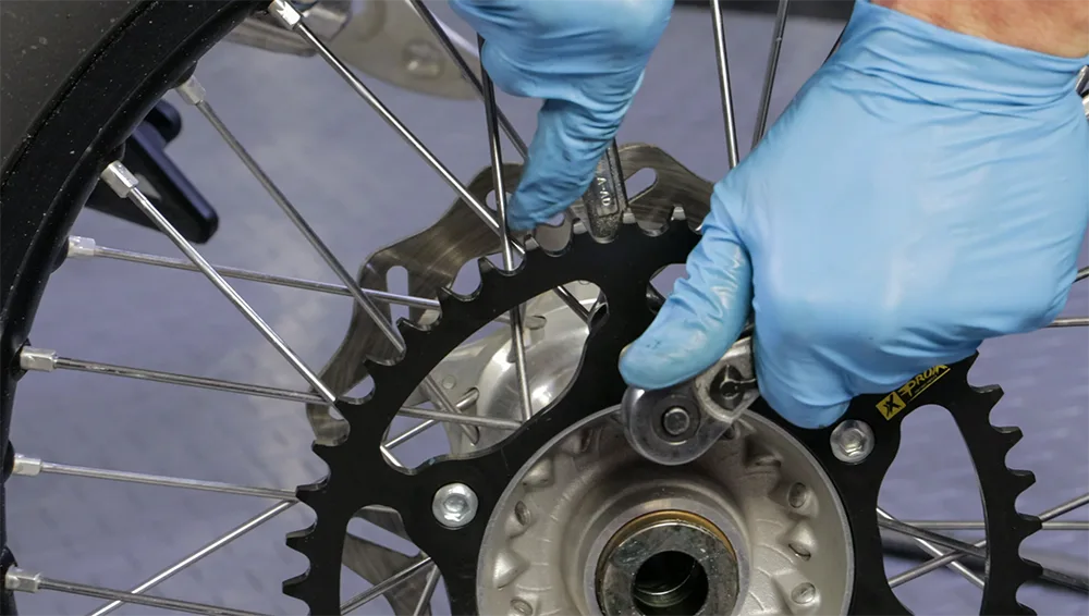 Uporabite s ključem, da se držite na strani oreščke. Oreho obrnite obratno ure, da jo zrahljate. Cilj je narediti napetost novega ali fiksnega, ki je govorila enako kot ostale predstave na isti strani kolesa.