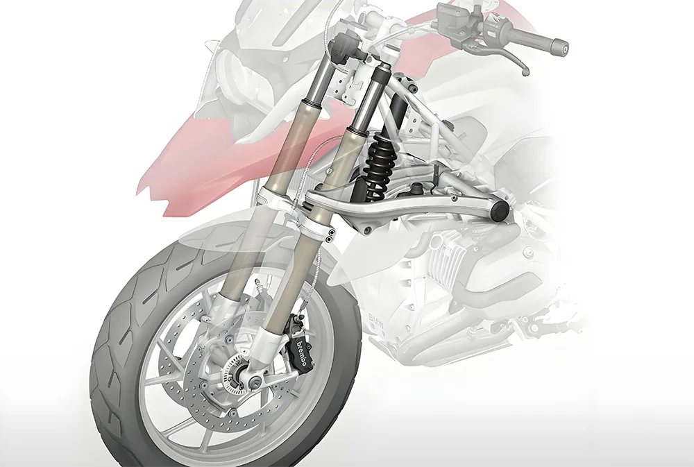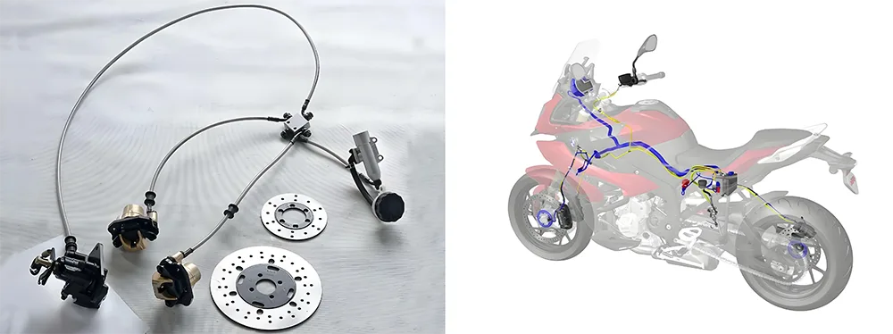 Tako neposredno upravljate s kolesom - vse, na kar se držite, da se usmerite in ga ustavite. Spredaj imate krmilno steblo in krmilo (ali "palice") - kjer oprijete in usmerite sprednjo pnevmatiko. Potem so tu krmilni ročaji: vaš zavorni ročaj (spredaj) in ročaj sklopke (leva roka), ter zavorni stopal (desna noga, običajno za zadnjo pnevmatiko). Kabli in povezave prehajajo na vaše poteze, medtem ko prava zmožnost ustavljanja izvira iz zavorne nastavitve - čeljusti se stisnejo na zavorne rotorje (ali bobne na nekaterih starih šolah). In ABS (protikloni zavorni sistem), ta življenjska varnostna funkcija, ki preprečuje, da bi se kolesa zaklenila, ko se resnično hitro upočasnite. Če ga zgrabite, stopite nanj ali se naslonite na njega, da nadzirate kolo, je del te nastavitve.