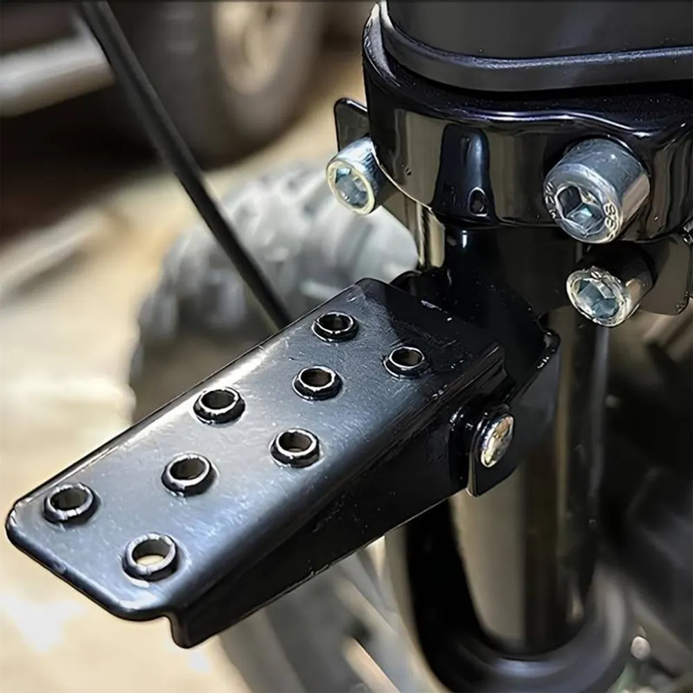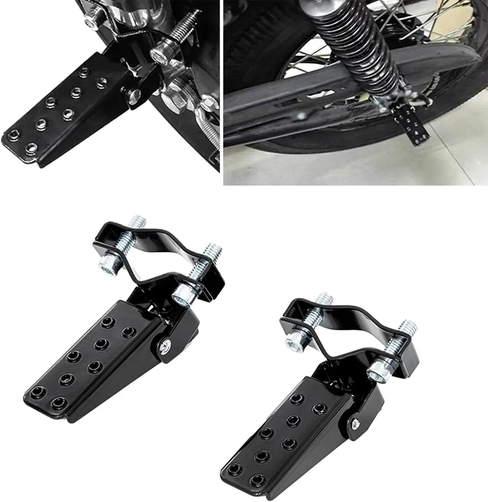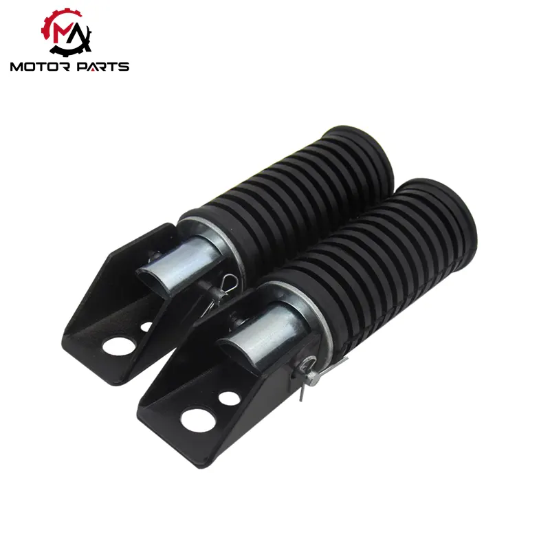 Zložljiva nožna stopalka za motorno kolo Suzuki GS125 tovarne Max Trading je namenski pripomoček za ulična kolesa Suzuki z majhno prostornino, zasnovan s kompozitno strukturo, ki združuje visoko trdnost in lahko zmogljivost. Zasnovan tako, da se ujema s praktičnim in ekonomičnim pozicioniranjem Suzukija GS125, ima mehak zgibni mehanizem s pomočjo vzmeti, odlično zmogljivost proti zdrsu in združljivost med serijami.