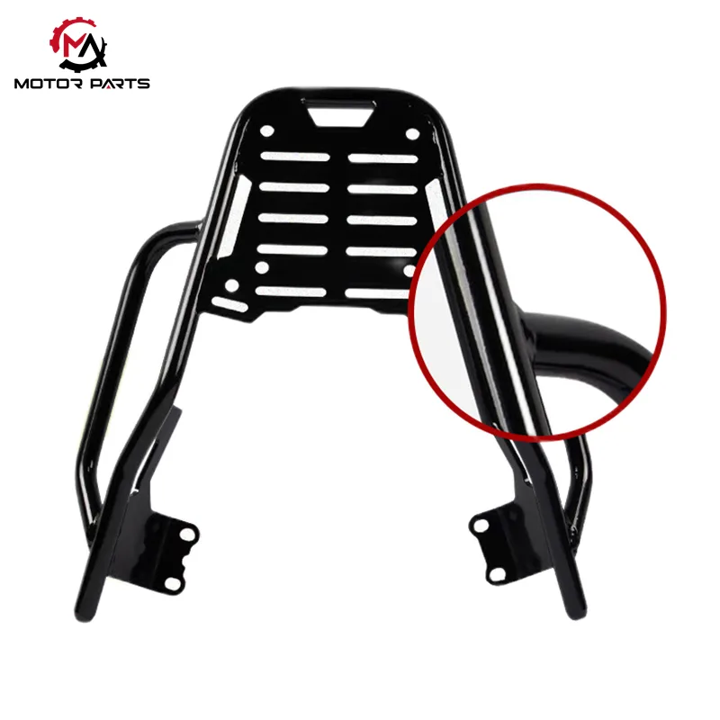 Zadnji prtljažnik Yamaha 125 je izdelan iz jekla visoke trdnosti, ki nudi trdno in prožno strukturo, zasnovano za dolgotrajno uporabo. Zasnovan je za zanesljivo prenašanje različnih vrst prtljage ter zagotavlja trdno in zanesljivo rešitev za vsakodnevna potovanja. Ne glede na to, ali gre za kratke vožnje v službo ali za daljša potovanja, ta nosilec zagotavlja varen prevoz vaših stvari brez kompromisov glede vzdržljivosti ali stila.