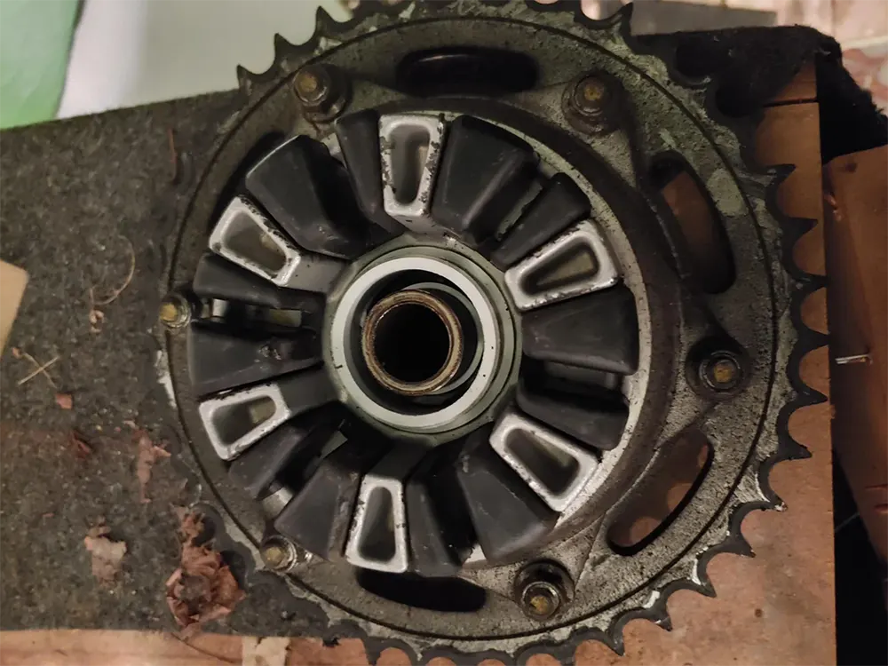 Kot odgovor na nihanja moči v območju nizkih vrtljajev 150-kubičnega enovaljnega motorja Yamaha YBR150Z guma za blaženje zadnjega kolesa motornega kolesa s svojo odlično zmožnostjo elastične deformacije učinkovito odpravi sunkovitost izhodne moči, doseže linearen in gladek prenos moči ter znatno izboljša udobje pri vožnji.